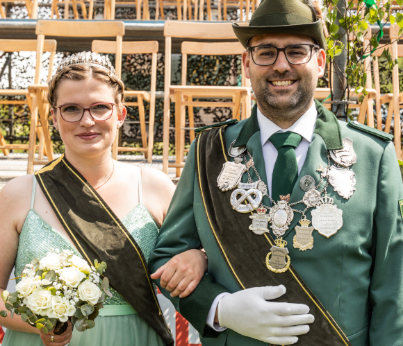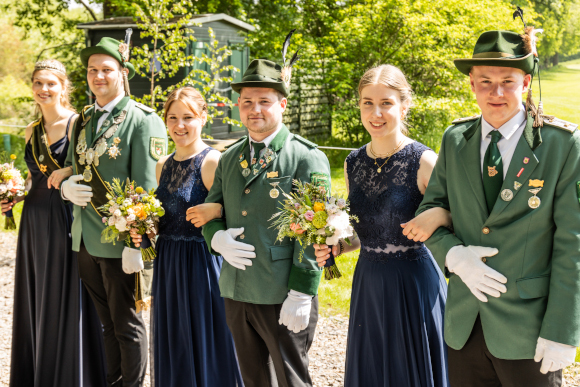 11.5.2024 Weselerwald (geg). Mit zahlreichen befreundeten Vereinen feierte der Schützenverein Weselerwald und Umgebung sein rundherum gelungenes 150-jähriges Jubiläum. Und damit aber auch den Abschied des amtierenden Königspaars Stefan Stenert und Lotta Schulte-Bunert mit den Thronpaaren Dominik Bohmkamp und Helena Eimers, sowie Henrik Bosmann und Eileen Sondermann