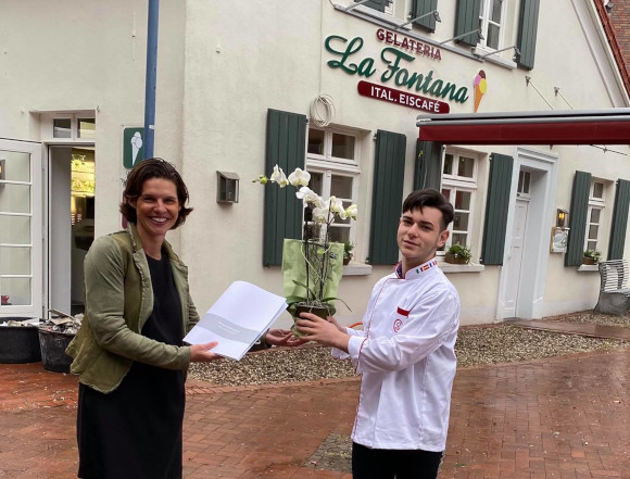 Auch die Espressomaschine funktioniert schon und der Inhaber, der 18-jährige Stefano Giampaolo ist in freudiger Erwartung auf seine Gäste. Seit einem Jahr lebt Stefano Giampaolo in Schermbeck und strahlt, als er sagt, dass er Schermbeck sehr schön findet. Und: Sein Handwerk habe er in Gelsenkirchen gelernt. Sein Vater Guiseppe Giampaolo führt übrigens seit zehn Jahren das Restaurant „La Cascina“.