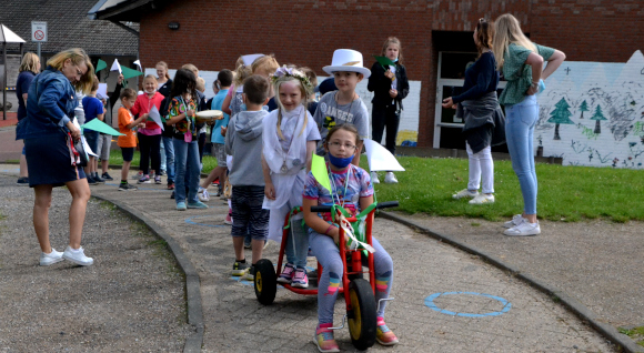3.8.2021 Schermbeck (geg). Die OGS an den Grundschulen bemühen sich immer, für die Kids ein abwechslungsreiches Programm auf die Beine zu stellen. Im katholischen Teilstandort Maxischule- stand so in der letzten Woche das Thema „Kilian“ auf dem Programm. Mit allem „Zick und Zack“. Die Räumlichkeiten der OGS und der Schulhof präsentierten sich eine Woche lang in grün-weißem Schmuck.