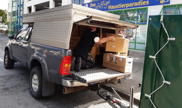 Einige der Dinge gingen auch zur Spendenaktion nach Lembeck, die Firma fährt jeden Tag in das Gebiet.
