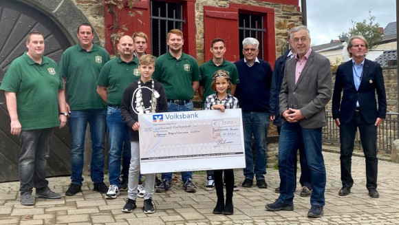 Damit realisierten sie das Versprechen den Erlös des Kinderschützenfestes im letzten Monat, ins Ahrtal zu spenden. Die stolze Summe von 3.500 Euro kamend abei zusammen, die an die Ahrweiler Schützengesellschaften gespendet wurden. Den Aufenthalt nutzte die Abordnung um den zweiten Vorsitzenden Jörg Rademacher um sich elf Wochenn nach der Flut vor Ort ein Bild von der derzeitigen Lage zu machen.
