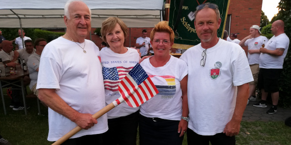 Einen besonderen Gast konnte Heiermann am Samstagabend beim Wettkampf begrüßen. Bob und Betsy aus Cleveland nämlich. Sie sind Freunde von Ralf und Sonja Horstkamp und freuten sich das erste Mal das Kiliansfest mitfeiern zu können. „Wir haben uns bei einem Urlaub am Comer See kennengelernt“, berichtet Ralf Horstkamp. Das Paar aus den USA ist mit seinen Schwiegereltern verwandtschaftlich verbandelt und war damals auf Europareise. Zwei Wochen lang bleiben sie in Schermbeck, bevor sie nach Polen reisen, um sich die Geburtsstätte des Großvaters von Bob (79J) anzuschauen. Im Jahr 1910 sei dieser aus dem damals noch österreichischen Teil der Monarchie in die USA ausgewandert.