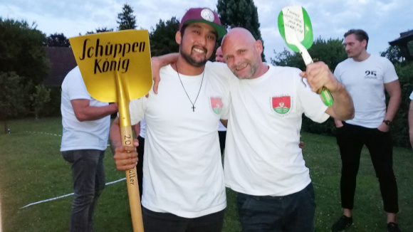 Die „Doofenschüppe“- ein kleines grün-weißes Gartenschüppchen- erhielt Guido Nuyken beziehungsweise er behielt sie, da er mit 14,70 Meter das schlechteste Ergebnis des Tages erzielte.
