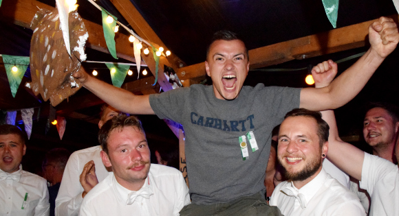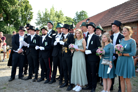 Schon mit dem zweiten Holzscheit holte sich Jan Bienbeck (25J) den begehrten Titel. Er war einer von vielen, die sich nach Mitternacht ins Königsglück schießen - pardon werfen wollten. Zur Königin erwählte er sich Anna Scholtholt (24J). Die Regentschaft von Max Bienbeck und Königin Linda Deppe ging damit nach drei Jahren zu Ende und das wurde an diesem Tag ausgiebig gefeiert. Genauso wie der 40. Geburtstag der Gilde, deren Vorstand in jedem Jahr wohl das verrückteste Schützenfest ever, auf die Beine stellt.