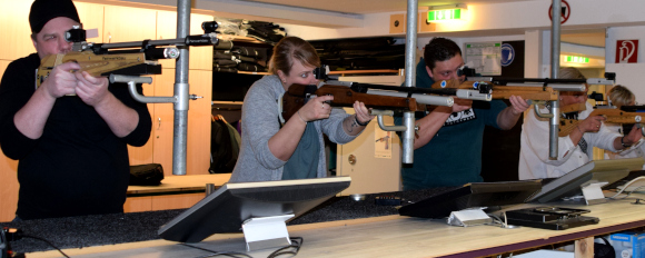 Der Vorsitzende Frank Stenkamp freute sich über die Resonanz: 62 Frauen und Männer in acht Gruppierungen – etwas mehr als letztes Jahr- traten an, um ihre Schießfestigkeit zu testen und gegeneinander in den Wettkampf zu treten. Vorher wurden sie natürlich auch kurz von den anwesenden Vereinsmitgliedern gecoacht. Eine halbe Stunde hatten die Kontrahenten Zeit um sich mit dem Gewehr vertraut zu machen. Nach einigen Probeschüssen wurden dann die 20 Wertungsschüsse abgegeben.