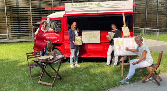Freuen sich auf viele Besucher: Uwe Groß, Marianne Teltrop und Dagmar Beckmann vom Naturpark Hohe Mark, Lisa Wissing (2.v.l) von der Tourist Info Raesfeld