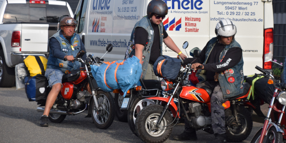 Die Tour ist eine Herzensangelegenheit, die Mofaclubs aus ganz Deutschland von Flensburg bis nach Weichering in Bayern verbindet, so beschreibt Organisator Tim Lais. Er begleitet die Tour mit einem Fahrzeug, in dem alles was für den Notfall gebraucht, transportiert wird.