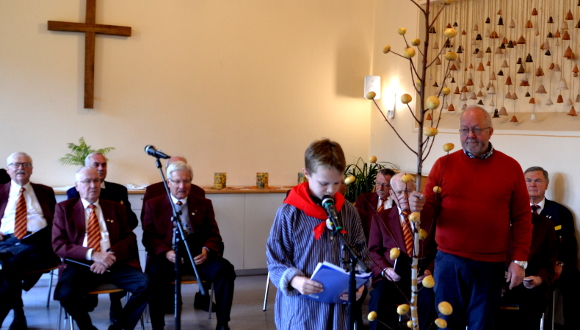 Musikalisch wurde der Festakt zum Erntedankfest vom Posanunenchor der evangelische Kinderchor Hardt, dem MGV Gahöen und dem Kinderchor Hardt untermalt. Natürlich durfte auch das plattdeutsche Gedicht vom „Stoppelhahn nicht fehlen“. Dieses sagte Jost Becks auf.
