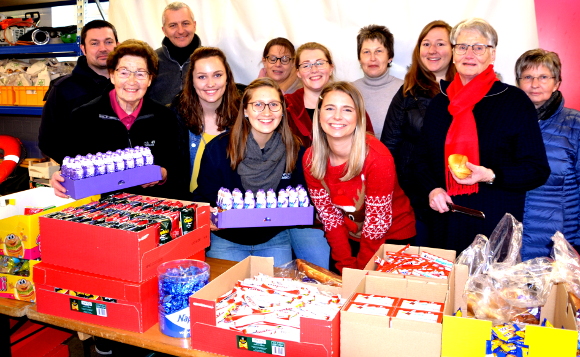 Im Feuerwehrgerätehaus waren die Helfer des heiligen Mannes aktiv. Mehr als 650 Tüten, oder eher gesagt kleine Stofftäschchen mit Süsskram wurden gepackt. „In diesem Jahr sind es mehr als im letzten Jahr“, berichtete die 86-jährige Hilde Benninghoven, die vom ersten Tag an dabei ist. Insgesamt 11 Helfer arbeiten wie am Fließband und zeigten, dass sie bereits eine eingespieltes Team sind. Am Abend schlüpften sie dann in ihre Engelsverkleidung, um die Geschenke an die Kinder zu verteilen und sich an den strahlenden Augen der Steppkes zu erfreuen.