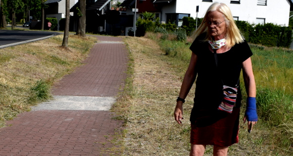 Die 74-Jährige setzt sich schon seit langem für den Erhalt von bunten, artenreichen Vorgärten ein und animiert die Schermbecker Bürger, auf „Schottergärten“ zu verzichten. Als sie am Montag sah, dass alle blühenden Mohnblumen vom Straßenrand verschwunden sind, habe sie im Rathaus angerufen und den Bürgermeister sprechen wollen, berichtete sie. Da sich dieser in Urlaub befindet, stand ihr sein Vertreter Gerd Abelt Rede und Antwort. Sie erhielt Antworten die sie nicht befriedigten und erst gar nicht beruhigten. Hildegard Daldrup machte sich auf den Weg um die Mäharbeiten in Bricht zu stoppen. „Ich kam zu spät“, sagte sie. Am Mittwoch aber fand sie die Bauhofmitarbeiter am Rathaus vor, die dort den Rasen kürzten und stellte sich kurzerhand vor den Mäher. „Die können doch nicht alle Blumen abmähen, die Insekten brauchen diese,“ sage sie. Erfreut wären die Mitarbeiter nicht gewesen, einer hätte sogar gerufen „Die Alte gehört doch in die Klapse“. Dass sie sich durch die Behinderung der Arbeiten eine Strafanzeige einhandeln könnte, ist ihr egal. „Dann geh ich eben in den Knast, na und? Die mähen hier keinen Zentimeter mehr“, hat sie sich vorgenommen.