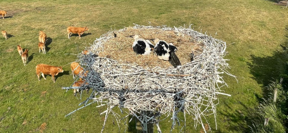 Ein in luftiger Höhe kreisender Weißstorch gesellte sich dazu. Aus der Ferne beobachteten beide das Geschehen, liefen zwischen den weidenden Kühen hin und her und klapperten aufgeregt. Denn es war wieder soweit. Die Störchenküken am Kuhweg und am Elsenweg wurden von Michael Jöbges, Arbeitsgemeinschaft Weißstorch NRW, beringt. Vor Ort war auch Niels Ribbrock von der Biologischen Station Recklinghausen. Die Aktion der Beringung mit speziellen Plastikringen auf dem je Storchenküken eine Nummer steht, wiederholen die Vogelschützer in jedem Jahr, um mehr über die Wanderungsbewegungen und Ansiedlungen der Störche zu erfahren.