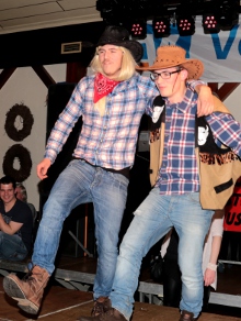 „Die Jungs werden gleich eine gnadenlos abgefahrene Show abliefern!" , rief der DJ und kurz darauf betrat das erste Duo die Bühne. Verkleidet als Cowboys tanzten zwei der Akteure zu „Ready to come and ready to go" und sorgten für laute Lacher in der Partymeute. Stefan und Dirk führten durch das Programm und motivierten das Publikum zum Mitfeiern. Weiter ging es dann mit einem Wolfgang-Petry-Imitator, der das Tanzbein zu „Wir sind das Ruhrgebiet" schwung. Begeistert tanzten viele aus dem Publikum mit und hatten großen Spaß dabei.