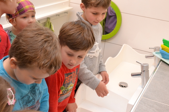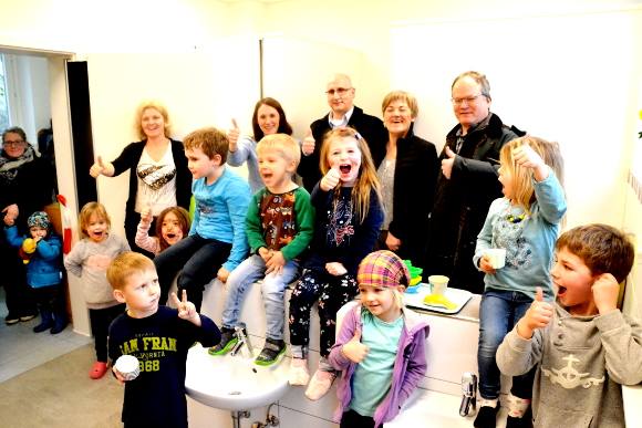 Natürlich probierten die Steppkes das direkt aus, und auch zum Hände waschen mussten sie nicht aufgefordert werden. Probewaschen war angesagt und auch die Toilettenkabinen wurden genau inspiziert. Das Wort „Cool“ war in diesem Moment ganz oft zu hören.