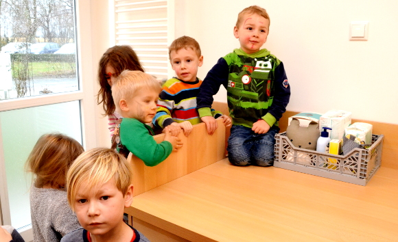 16.3.2019 Gahlen (geg). Die Freude der Kinder in der Ameisengruppe des Kindergartens in Gahlen war nicht zu übersehen. Ungeduldig warteten sie darauf, dass Felix endlich das Band durchschnitt und der Weg zum neuen Waschraum frei war.