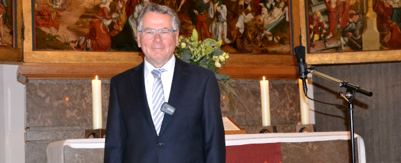 Pfarrer Dieter Hofmann betonte mit gewohntem Humor, dass er schon als Neugeborenes den Wunsch hatte Pfarrer in Schermbeck zu werden. Nach fast 30 Dienstjahren kam er dann an.