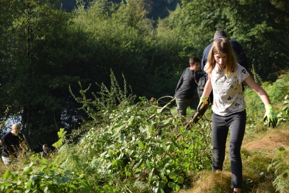 Ast für Ast schleppen die Mädels und Jungen die großen Zweige den Hang hinauf und kommen dabei ganz schön ins Schwitzen. Unter ihnen ist auch Anne-Sophie Ostermann. Sie begrüßt, dass man nach der Arbeit direkt sieht, was man geschafft hat. Sie setzte sich gerne dafür ein, Pflanzen und Tiere zu schützen und ist deshalb auch Mitglied der fünfköpfigen Gruppe Gruppe „Napros,“ die helfen die Idee weiterzutragen. Anne-Sophie betont: “Ich finde es wichtig dass dafür gesorgt wird, das seltene Tiere und Pflanzen ihren Lebensraum erhalten oder wieder zurückbekommen“.