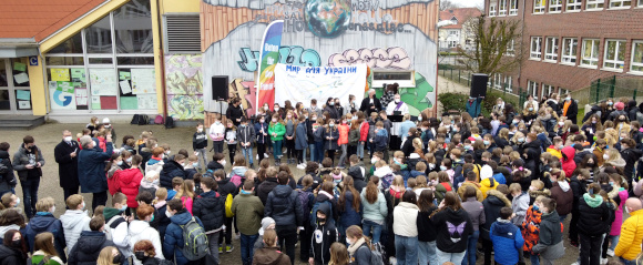 Gesamtschüler/innen zeigten ihre Solidarität mit den Menschen in der Ukraine