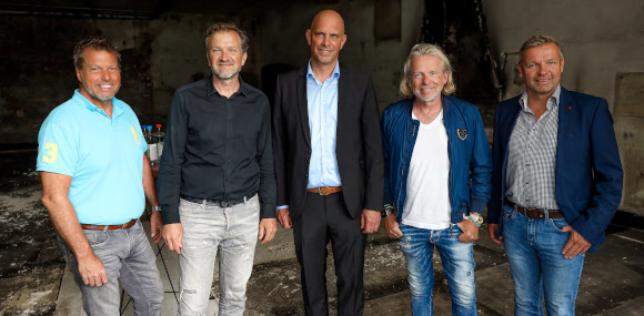 v.l. Wirtschaftsförderer Gerd Abelt, Mark Riegel, Frank Rottbeck, Stephan Stender, Bürgermeister Mike Rexforth
