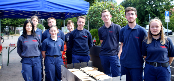 Zur Stärkung standen die Mitglieder der Feuerwehr am Grill und sorgten für leckere Bratwürstchen. Der Förderverein der Maxischule übernahm die Bewirtung mit Kaffee, Kaltgetränken und Kuchen.