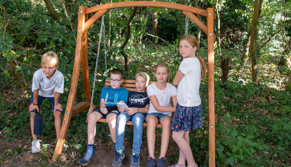 Viel gibt es auf dem gut einen Kilometer langen Rundweg, dessen Strecke der des Bücker-Kreuzweges ähnelt, zu entdecken. So sind die Kinder eingeladen, sich mit Hilfe von Barfußplatten Gedanken über das Thema Heimat zu machen, am neuen Regenbogenspiel können sie ihre Gefühle anhand von Farben und Begriffen sortieren und an der Weggabelung halten die Kinder vom Kinder-Pilger-Club Entscheidungshilfen bereit. Auch für den Umgang mit der Kreuzwegstation „Weinende Frauen“ haben die Kinder eine Idee entwickelt. „Hier muss man etwas neugierig und auch mutig sein“, findet Nils.
