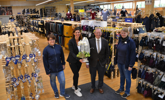 Mit Unterstützung der Wirtschaftsförderung wurde im Gewerbegebiet Hufenkamp ein passendes Grundstück gefunden, gekauft und vom Unternehmen bebaut. Es ist der 47. Markt des Unternehmens. Jedes Jahr werden den Umsatzzahlen des Onlinehandels entsprechend durchschnittlich drei neue Store`s eröffnet, berichtete der Unternehmer, der 27 Jahre lang als Vielseitigkeitsreiter aktiv war.
