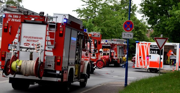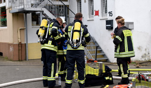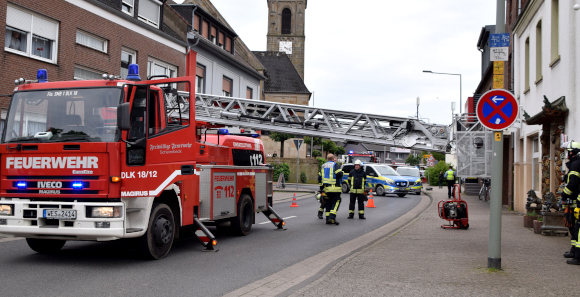 Von mehreren Passanten wurde die Feuerwehr alarmiert, da die Qualmentwicklung aus dem Schornstein ziemlich extrem und weit zu sehen war, wie Einsatzleiter Marvin Schetter berichtete. Alle drei Löschzüge waren vor Ort und löschten den Brand unter Atemschutz. Da die Rauchentwicklung auch im Gebäude ziemlich massiv war und sich verteilt hatte, gestalteten sich die Arbeiten der Einsatzkräfte entsprechend schwierig. Alle im Haus befindlichen Wohnungen mussten auf Kohlenmonoxidwerte kontrolliert werden. Erschwerend war, dass die Bewohnerin im ersten Stock über dem Restaurant, sich derzeit in Urlaub befindet. Mittels einer Drehleiter bohrten die Feuerwehrkräfte von außen ein Loch in die Scheibe, um so in die Wohnung zu gelangen. „Wir haben keine andere Möglichkeit und das ist günstiger als die Tür aufzubrechen“, erklärte Schetter. Aufgrund der hohen Messwerte wurden hier wie in den anderen Wohnungen Ventilationsmaßnahmen eingeleitet