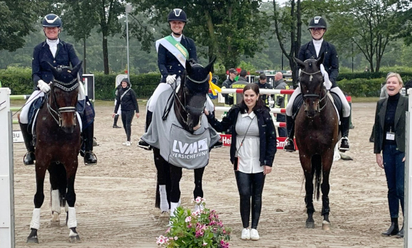 Spannend machte es Christina Lindemann (RV Stockum), die nach Platz 5 in der ersten Wertungsprüfung an allen vorbeizog und sich in der L-Dressur-Wertung an die Spitze des Starterfeldes setzte. Silber erzielte Julie-Sophie Flauder (Graf von Schmettow Eversael) vor der Bronzegewinnerin Christina Jürgens vom RV Eintracht Veen.