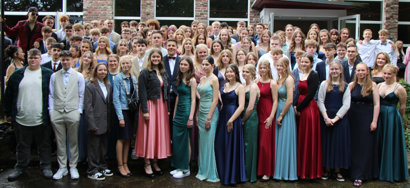 Zudem kamen die Schülerinnen und Schüler zu Wort, nicht nur durch Paul Grotendorst und Sina Hülsdünker, die durch das Programm leiteten, sondern auch durch Amelie Lindhorst und Asmara Syed bei der Schülerrede. Sie verglichen die letzten sechs Jahre im Klassenverband mit eine Kanufahrt und dankten besonders ihren Steuermännern und -frauen, den Klassenlehrerinnen und Klassenlehrern, die bei der Überwindung des großen Wasserfalls am Ende, den ZAP, eine große Hilfe waren. Außerdem erinnerten die beiden Schülerinnen der 10d an die Klassenfahrten, das Homeschooling während der Pandemie und den damit verbundenen, neuen Schulalltag.