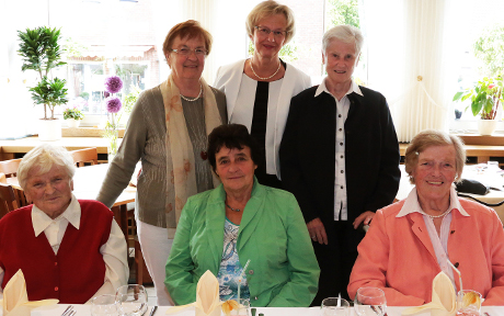 Gemeinsam mit Anni Gardemann (81J), Irmgard Pesch (83J), Elsbeth Lensing (68J), Elis Stiebels (82J) und Burgis Berg(73J) schauten die Damen am Jubiläumstag „schmunzelnd zurück", wie Kegelmutter Anny erzählte. Übrigens ist auch Elis Stiebels seit der ersten Stunde dabei.