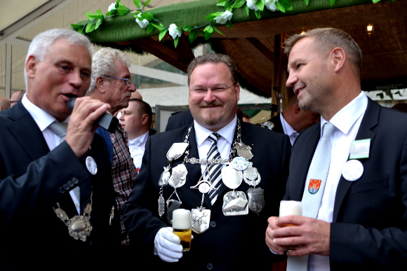 Das traditionelle Dorffest begann für die Schermbecker bereits am Freitagabend mit der Kranzniederlegung am Ehrenmal. Präsident Rainer Gardemann wies in seiner Ansprache auf das 700jährige Jubiläum der Burg hin. Die Geschichte der Gilde sei eng mit der Burg verbunden, so Gardemann. Beim anschließenden Thronball ließen es die Gäste um das Königspaar Christan Hötting und Ane Paus noch einmal krachen.