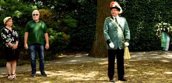 8.6.2020 Damm (geg). Eigentlich sollte es nur eine Kranzniederlegung im ganz kleinen Kreis werden. Doch nach und nach trudelten am Dammer Schützenhaus am Sonntagmittag immer mehr Schützen ein.