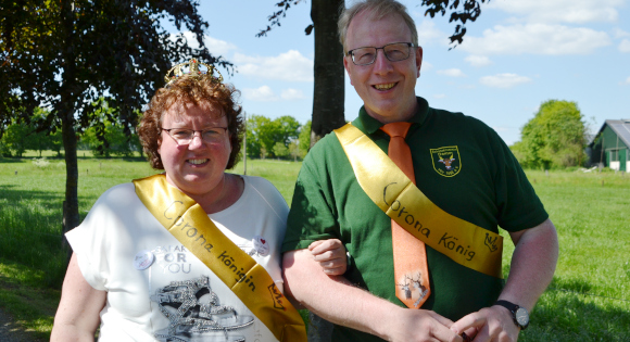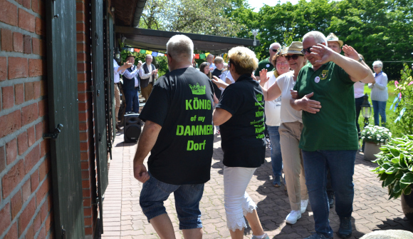 Das Paar freute sich sichtlich, dass sie doch etwas merken durften, dass sie vor 60 Jahren das Volk regierten. An der Gaststätte Pannebäcker traf die Throngesellschaft auf den ehemaligen König Günther Heikapell. Er regierte im Jahr 1958 mit Wilma Pannebäcker das Dammer Volk.