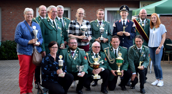 Die Pokale überreichte Königin Tanja Jörres. Bei den Sportschützen Damen holte sich Natascha Karstaedt den Siegerpokal. Den Damenpokal für die beste Schützin erhielt Antje Schröder. Für die Damen gibt es fünf Jahre lang einen Wanderpokal, im letzten Jahr erhält die beste der fünf Schützinnen den Pokal und darf ihn behalten. Darüber freute sich Jutta Meyer.