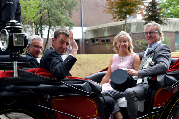 14.7.2022 Altschermbeck (geg). Nach vielen Jahren noch einmal im Mittelpunkt des Festgeschehens zu stehen und Kutsche fahren zu dürfen, das genießen die Silber- und Goldkönigspaare immer sehr.