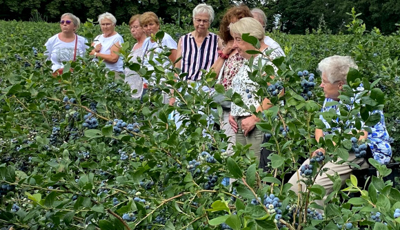 Seit 2018 baut der Familienbetrieb auf 8 Hektar Fläche, fünf verschiedene Sorten Heidelbeeren an. Die Besucher besichtigten die weitläufigen Plantagen, verkosteten die unterschiedlichen Sorten und erfuhren dabei allerlei interessantes über die blauen Beeren, deren Anbau und den arbeitsreichen Weg bis in den lokalen Lebensmitteleinzelhandel, sowie auch einige Hofläden in der Region.