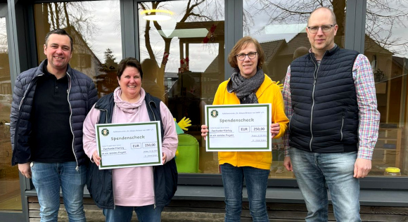 Die beiden Vorstandsmitglieder Thorsten Eimers und Ingo Buschmann übergaben den strahlenden Leiterinnen der Kindergärten die Schecks.