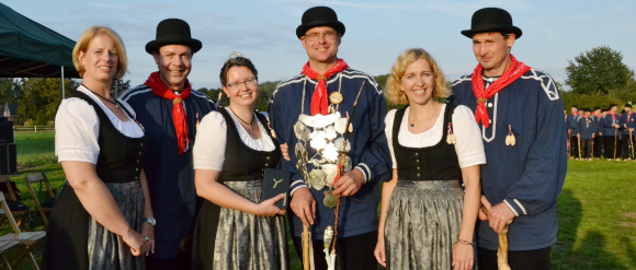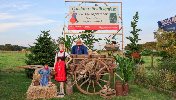 20.07.2024 Uefte-Overbeck. Langsam aber sicher macht sich das kommende Trachtenschützenfest in Uefte-Overbeck bemerkbar. Die Tanzgruppen üben schon seit einigen Wochen und jetzt werden auch die Nachbarschaften aktiv, um mit ihren Kreationen aus Stroh auf das nahende Fest aufmerksam zu machen, welches vom 7. bis 9. September 2024 stattfindet. Damit naht auch das Ende der Regenschaft von König Bernd Clevermann und Königin Sabrina Ribbekamp, den Ehrenpaaren Stefan Ribbekamp und Petra Temmler sowie Matthias Temmler und Claudia Klevermann. Am 9. September 2019 holte Bernd Clevermann mit dem 523. Schuss den Vogelrest von der Stange. Lang ist es her, denn die Trachtenschützengilde feiert nur alle fünf Jahre ihr Schützenfest.