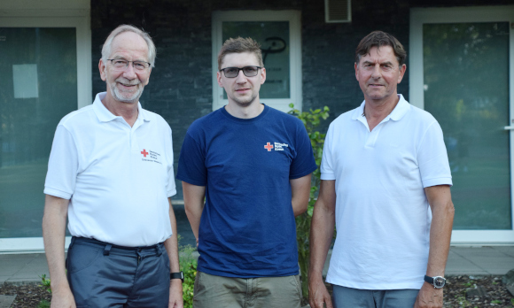 Auf dem Foto von li: DRK Vorsitzender Reinhard Hoffacker, Gruppenleiter Alexander Fey und Michael Benninghoff SV Schermbeck 2020
