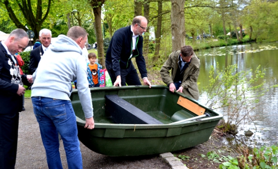 Demtentsprechend wurden die Werbekarten die in jedem Jahr von der Gilde im Ort verteilt werden, gestaltet. Präsident Rainer Gardemann, König Bodo Horstkamp und Jungschützenkönig Jonas Russow charterten für den Fototermin ein Boot und gingen aufs Wasser. Wohl bemerkt aufs Wasser und nicht ins Wasser.