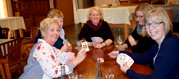 Trotz des strahlenden Sonnenschein fanden sich zahlreiche Liebhaber des Kartenspiels im Saal ein. Immer aber wird die Gelegenheit gern genutzt um einfach zum Klönen dabei zu sein, oder andere Spiele zu spielen. Gestärkt durch Kaffee und Kuchen wurden eifrig die Karten gemischt, “Hochzeiten gefeiert” oder “Solos” gespielt.