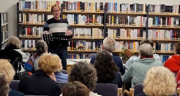 15.10.2024 Schermbeck (pd). Martin Bußmann sorgte in der Katholischen Öffentlichen Bücherei (KÖB) Schermbeck für einen abwechslungs- und wortspielreichen Abend bei der Autorenlesung seines Krimis „Elli, bist du’s?“