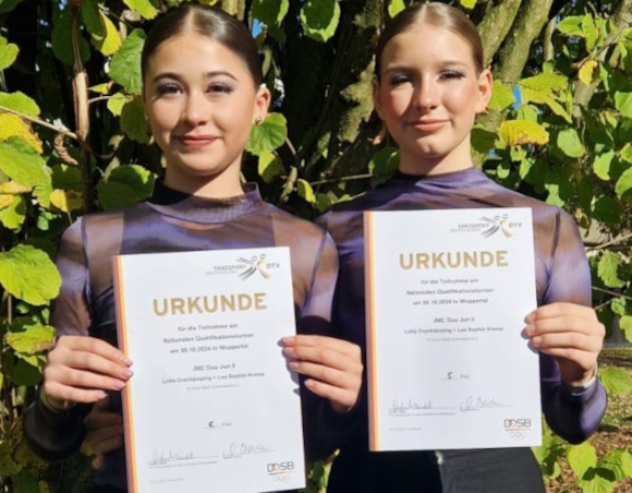 Lea und Lotta ertanzten sich im Duo Platz fünf, hatten sich bereits bei der Regionalmeisterschaft im September für die Deutsche Meisterschaft qualifiziert.