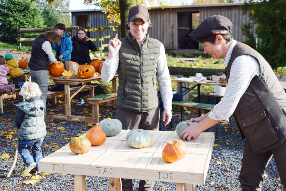 Am vergangenen Wochenende luden die „Hat-Ladies“ Interessierte zum gemeinsamen Kürbisschnitzen bei Kürbissuppe und Würstchen ein. Die 10-jährige Nola Casado trat fast in die Fußstapfen ihrer Mutter, half, wo sie konnte und führte für die kleinen Besucher ein selbst entwickeltes Puppenspiel auf. Nola sei quasi in der Natur aufgewachsen, berichtet Carola Casado, die, wenn es ihr nicht gut geht, in den Wald geht: „Danach ist die Seele bereinigt“.