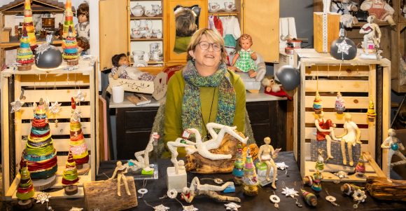 Wunderschöne Upcycling-Produkte warteten am Stand von Heike Schmiegel. Aus Pappmaché gefertigte Miniskulpturen fielen neben bunten Tannenbäumchen und Dekoartikeln direkt ins Auge. Herausragendes Thema der kleinen Skulpturen ist das Lesen: und so modelliert sie Figuren aus Buchpapier, die sie in typischen, aber immer anderen Leseposition erstellt. Wer das Detail liebt, wurde hier sicher fündig.